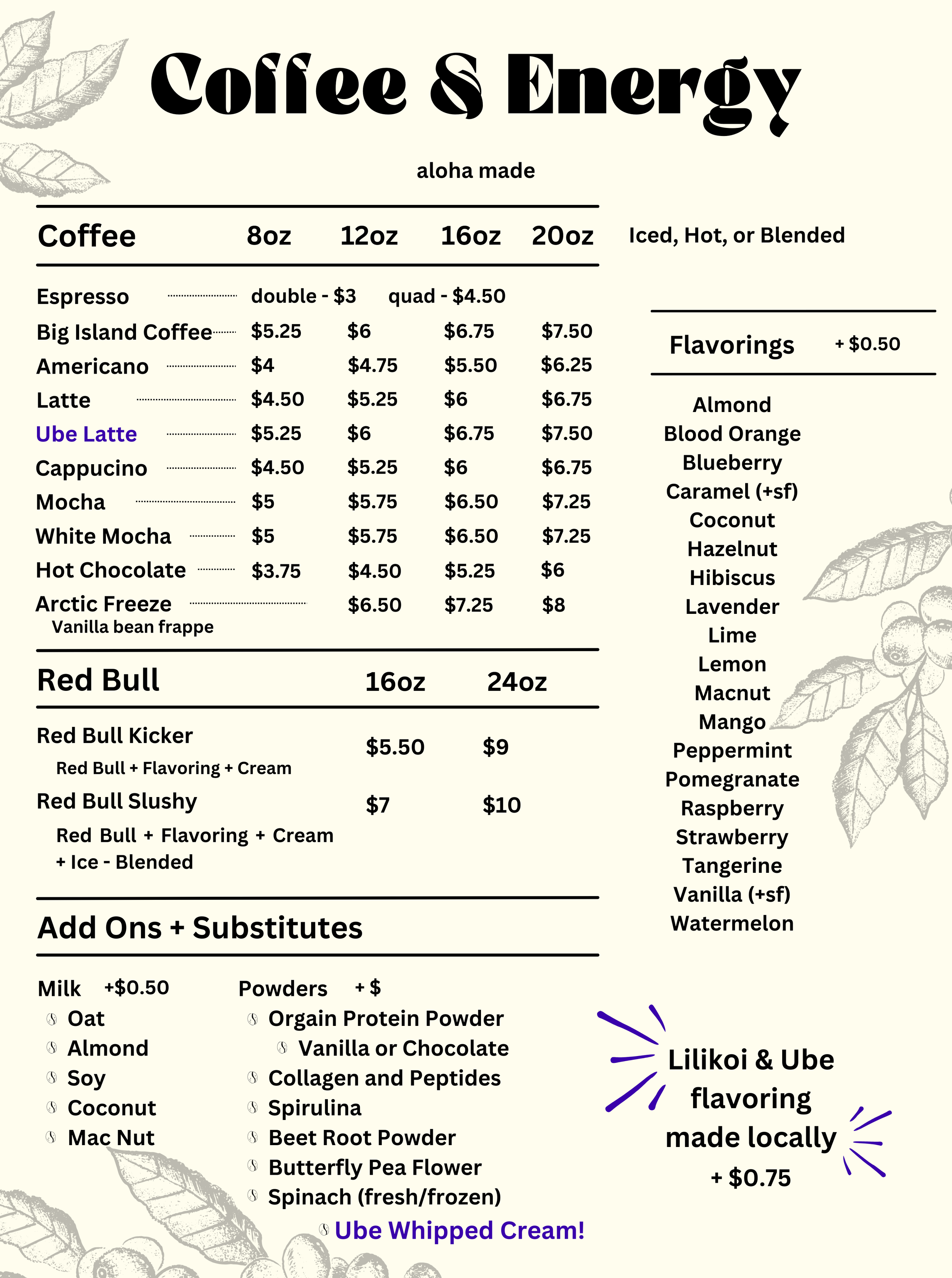 And new specials every week!! And new specials every week!! And new specials every week!! Current and Previous Specials Matcha and chai are permanent specials